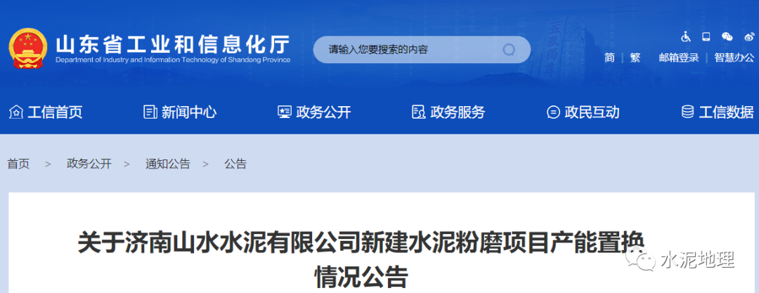 6月30日,山东省工信厅官网发布《关于济南山水水泥有限公司新建水泥粉磨项目产能置换情况公告》。