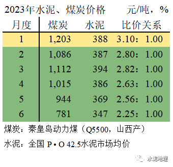 2023年6月21日,煤炭价格820元/吨(上周765),水泥价格340元/吨(上周345)。煤炭、水泥比价,为今年最低。![]()