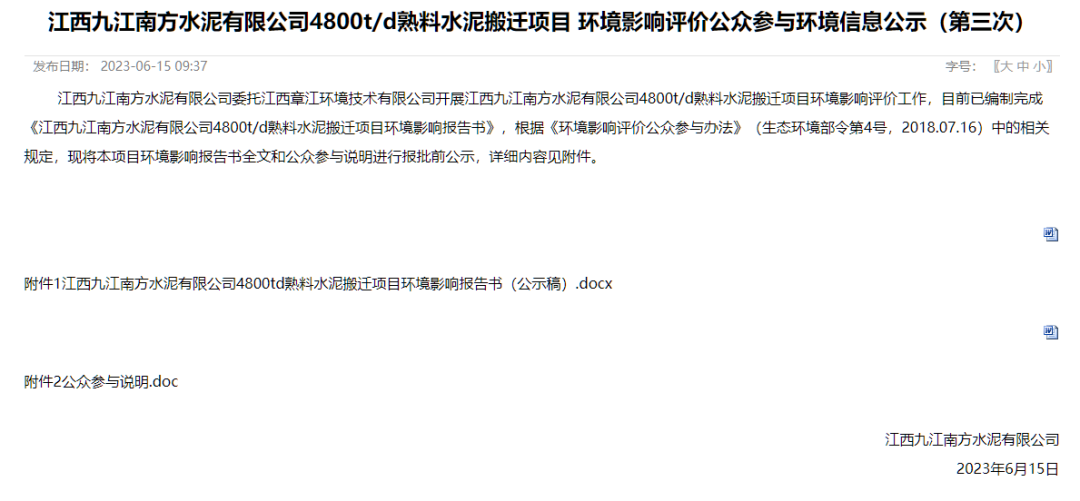 日前,彭泽县人民政府发布江西九江南方水泥4800t/d熟料水泥搬迁项目环评公众参与环境信息公示(第三次),其中提到江西南方水泥有限公司拟投资13亿,建设江西九江南方水泥有限公司4800t/d熟料水泥搬迁项目。