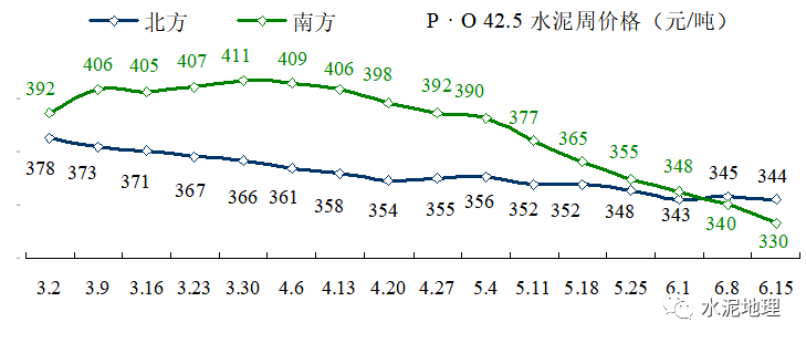 进入5月,南方市格下跌节奏加快,6月1日从价差34元/吨缩至5元/吨,6月8日北方价格反超南方,南方跌8元/吨,北方涨2元/吨,6月15日,南方价格低于北方14元/吨。![]()