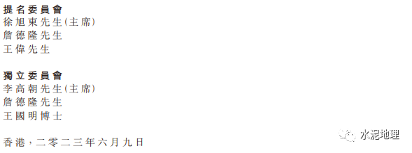 当天,亚洲水泥还发布了董事名单与其角色和职能公告。