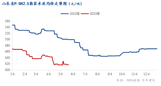 据百年建筑网监测,截至5月31日,山东P.O42.5散装均价为464元/吨,同比下降16.58%,整体水泥价格偏弱运行。5月10日山东大面积停窑,供应收窄后为修复利润,多企业推涨20-30元/吨,但是市场接受程度不高,目前已回落,并出现下跌的趋势。