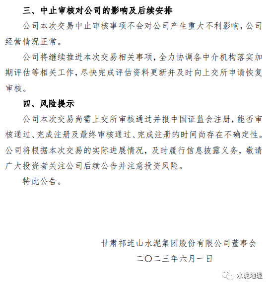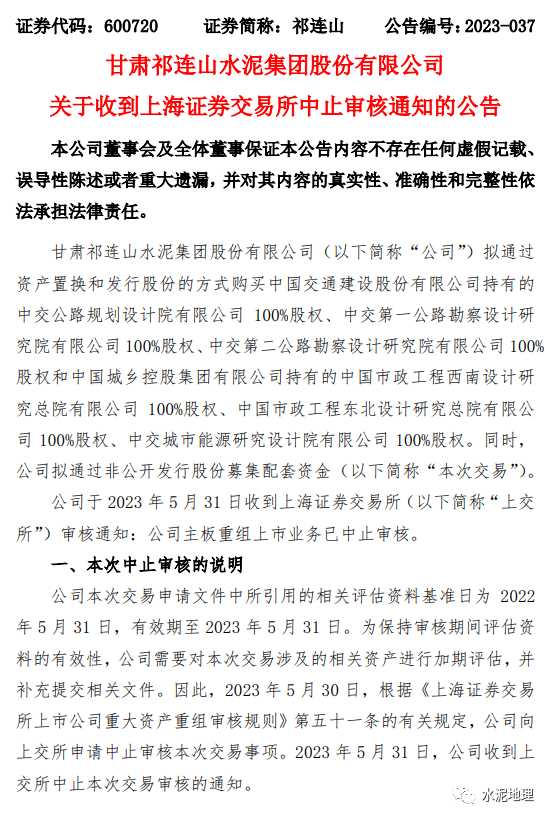 祁连山发布资产重组进展公告