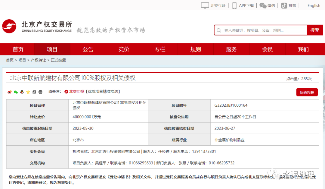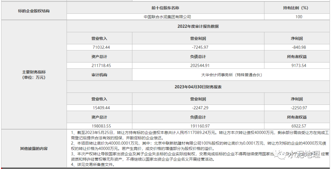 底价4亿元!中联水泥挂牌转让旗下公司100%股权