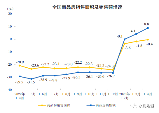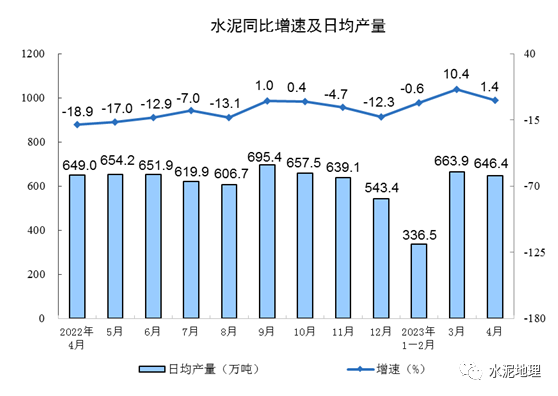 2023年1-4月全国水泥产量5.84亿吨,同比增长2.5%