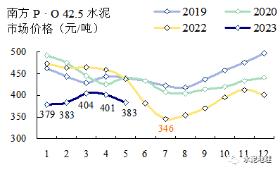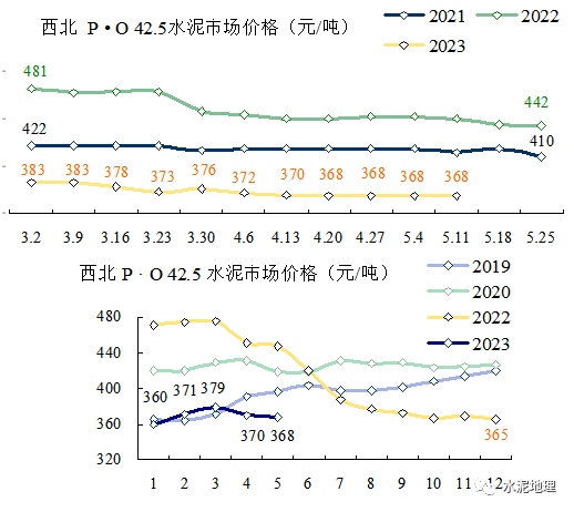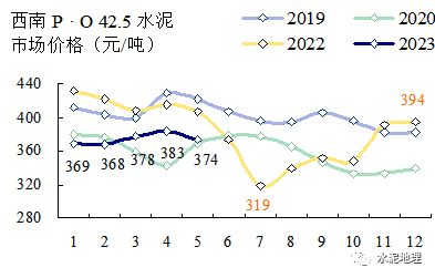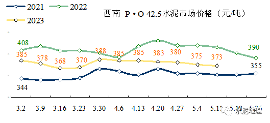 西南,2023年价格窄幅波动。5月均价374元/吨,略高于较年初。![]()