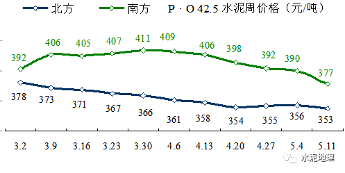 南方,2023年5月11日价格377元/吨,3月底价格见顶后,连续6周走低,累计下降34/吨。较年初价格略增4元/吨。4、5月旺季价格下调。![]()