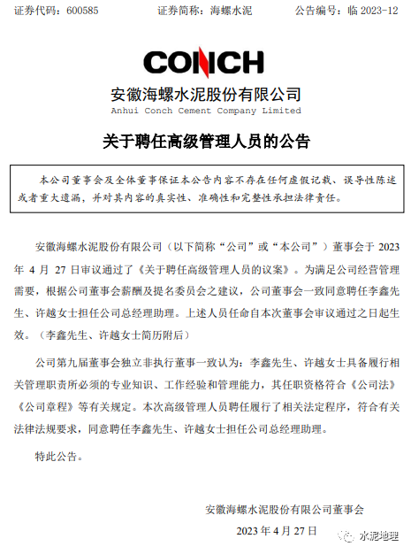 海螺水泥高层人事变动
