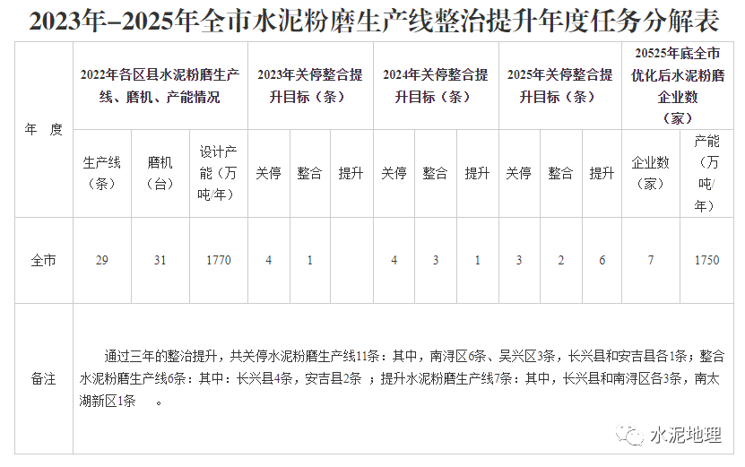 主要目标是到2025年底,全市水泥粉磨行业整治提升工作取得明显成效:全市水泥粉磨生产线关停整合16条以上,腾出盘活土地500亩左右;