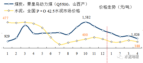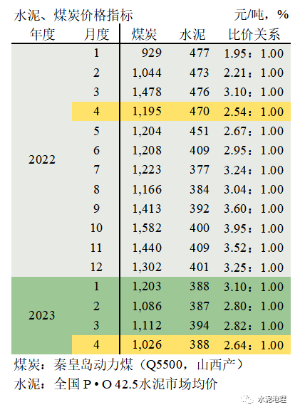 2023年煤炭、水泥价格有所变化,4月煤炭价格1,025元/吨,较去年同期下降14.13%,水泥价格388元/吨,下降17.48%,水泥价格下降幅度高于煤炭。![]()