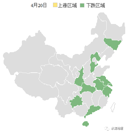上周4月13日,1涨9跌。延续上周价格下跌,区域范围进一步扩大,雨水+资金不足,出货低、库存高,引发价格下跌。华南、东北地区价格尚未被波及到。![]()