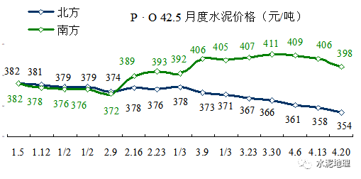 进入2月,南方市场价格反超北方,剪刀差拉大。4月20日,南方价格398元/吨,掉头向下,北方价格继续下滑,两地价差44元/吨。![]()