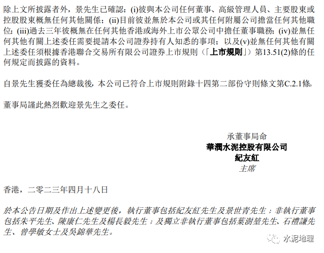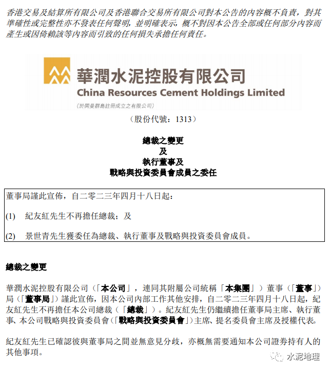 华润水泥高层人事变动,纪友红不再担任总裁!