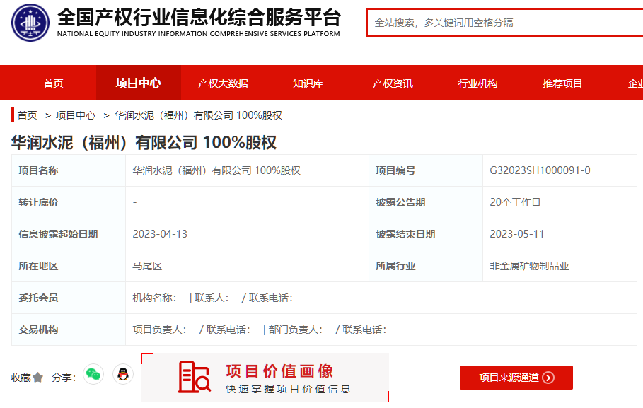 华润水泥福州公司转让100%股权