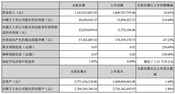 四川双马上半年营收12.41亿元 同比上升24.01%