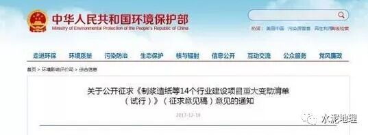 环保部关于公开征求《制浆造纸等14个行业建设项目重大变动清单(试行)》(征求意见稿)意见的通知,包含水泥建设项目重大变动清单(试行)(征求意见稿)。