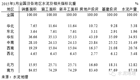 2015年1~3月数据已经发布,明显看到南方3地区华东、中南、西南水泥产量的比重大幅提高,这一比重在4月会有很大改变,北方地区错峰生产结束将恢复正常生产。