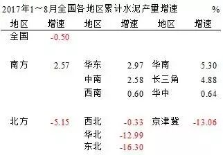2017年1~8月数据表明,南强北弱格局依然未变,增长速度一增一负,相差8个百分点。华东、中南反超西南产量增速;北方三地华北、东北两位数负增长,市场形势依然严峻,西北基本持平。