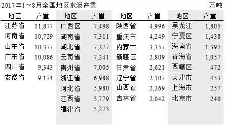 江苏省水泥产量仍然位居榜首,河南、山东尽管错峰生产受到影响,产量仍保持前位。进入4季度,或许就要退位。广西、湖南水泥产量上升到第7、8位,云南、贵州位于第10、11位,浙江、河北从前10退出。