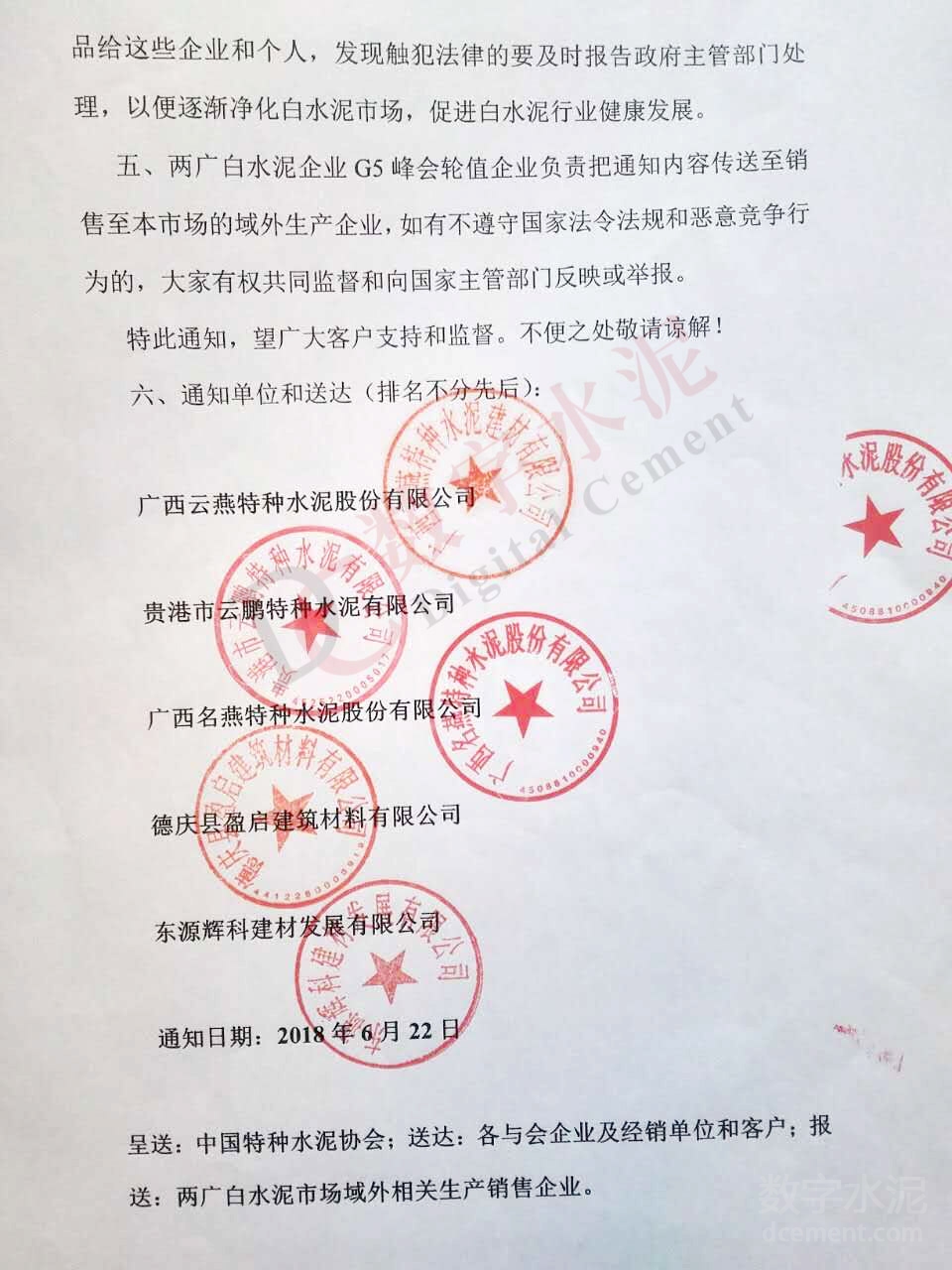 两广白水泥企业发布联合通知函,承诺将自觉严格要求自身按照国家标准生产和销售白水泥系列产品,共同配合政府主管部门规范和整治好广东、广西白水泥市场,促进白水泥行业进步和健康发展。全文如下: