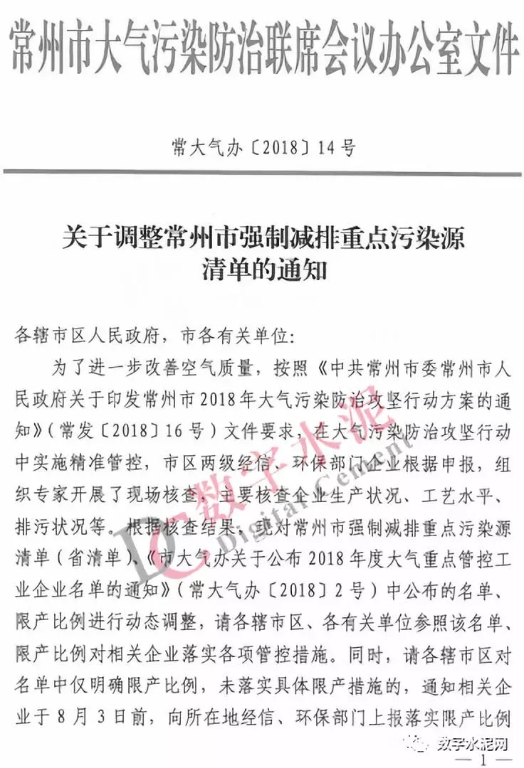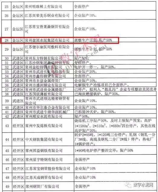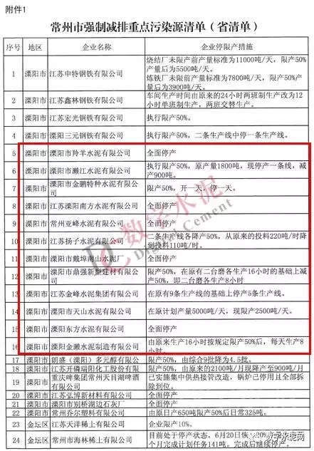 多家水泥企业需全面停产!江苏常州水泥企业停产细节出台,附企业产能名单