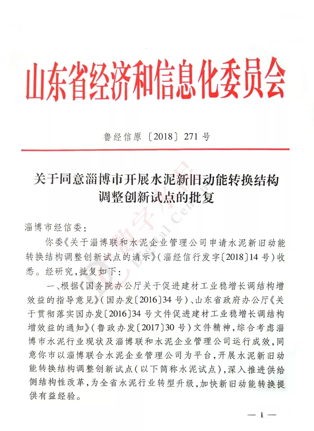附:《关于同意淄博市开展水泥新旧动能转换结构调整创新试点的批复》