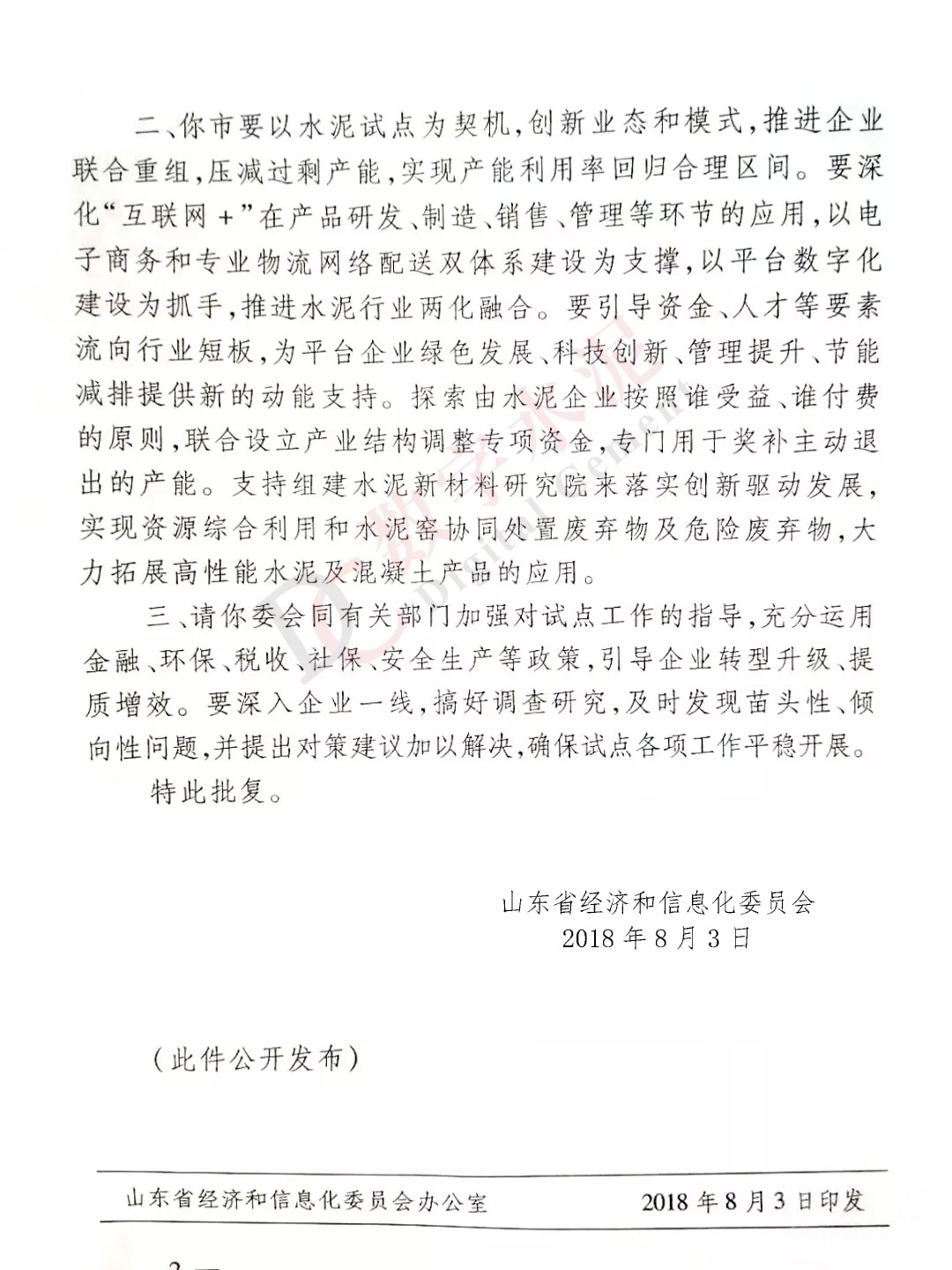 据数字水泥网获悉,近日,山东省经济和信息化委员会正式批复同意淄博市以淄博联和水泥企业管理公司为平台,开展水泥新旧动能转换结构调整创新试点,深入推进供给侧结构性改革,为全省水泥行业转型升级,加快新旧动能转换提供有益经验。要求淄博市以水泥试点为契机,创新业态和模式,推进企业联合重组,压减过剩产能,实现产能利用率回归合理区间。探索由水泥企业按照谁受益、谁付费的原则,联合设立产业结构调整专项资金,专门用于奖补主动退出的产能。支持组建水泥新材料研究院来落实创新驱动发展,实现资源综合利用和水泥窑协同处置废弃物及危险废弃物,大力拓展高性能水泥及混凝土产品的应用。淄博经信委要会同有关部门加强对试点工作的指导,充分运用金融、环保、税收、社保、安全生产等政策,引导企业转型升级、提质增效。