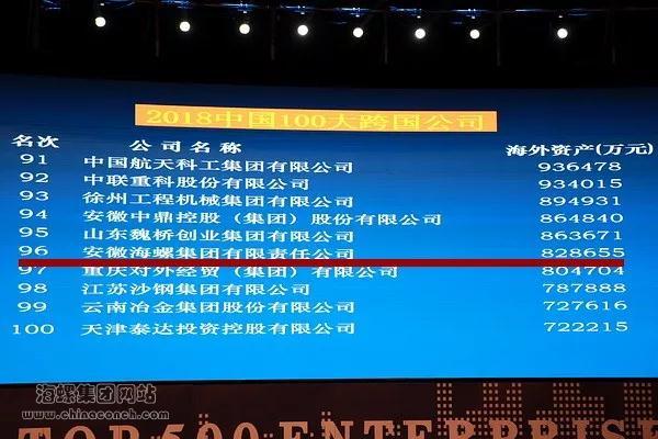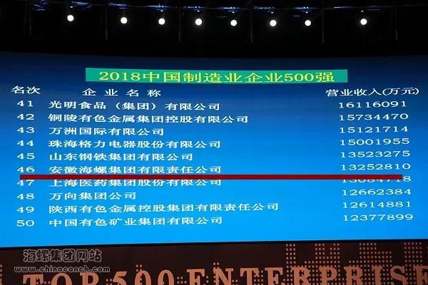 海螺集团连续14年入围中国企业500强,荣列2018中国企业500强第127位,较2017年上升了31位;荣列中国制造业企业500强第46位,较2017年上升了17位;荣列中国跨国公司100大及跨国指数第96位,较2017年上升了4位。