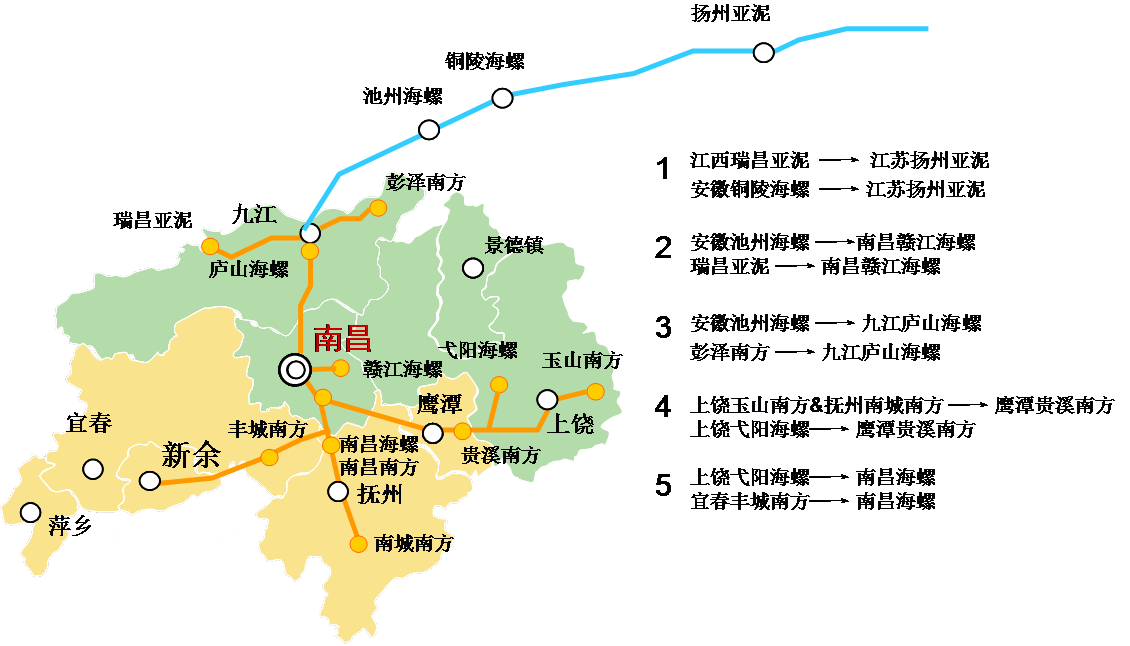 - 海螺、南方、亚东、红狮几大企业集团共同维护江西省水泥。特别是企业集团间根据市场、物流等进行水泥熟料互换,不但可为双方节省物流费用,降低运输成本,提高效益,并且实现节能减排,无疑这是行业在应对产能过剩、节能减排的又一亮点。